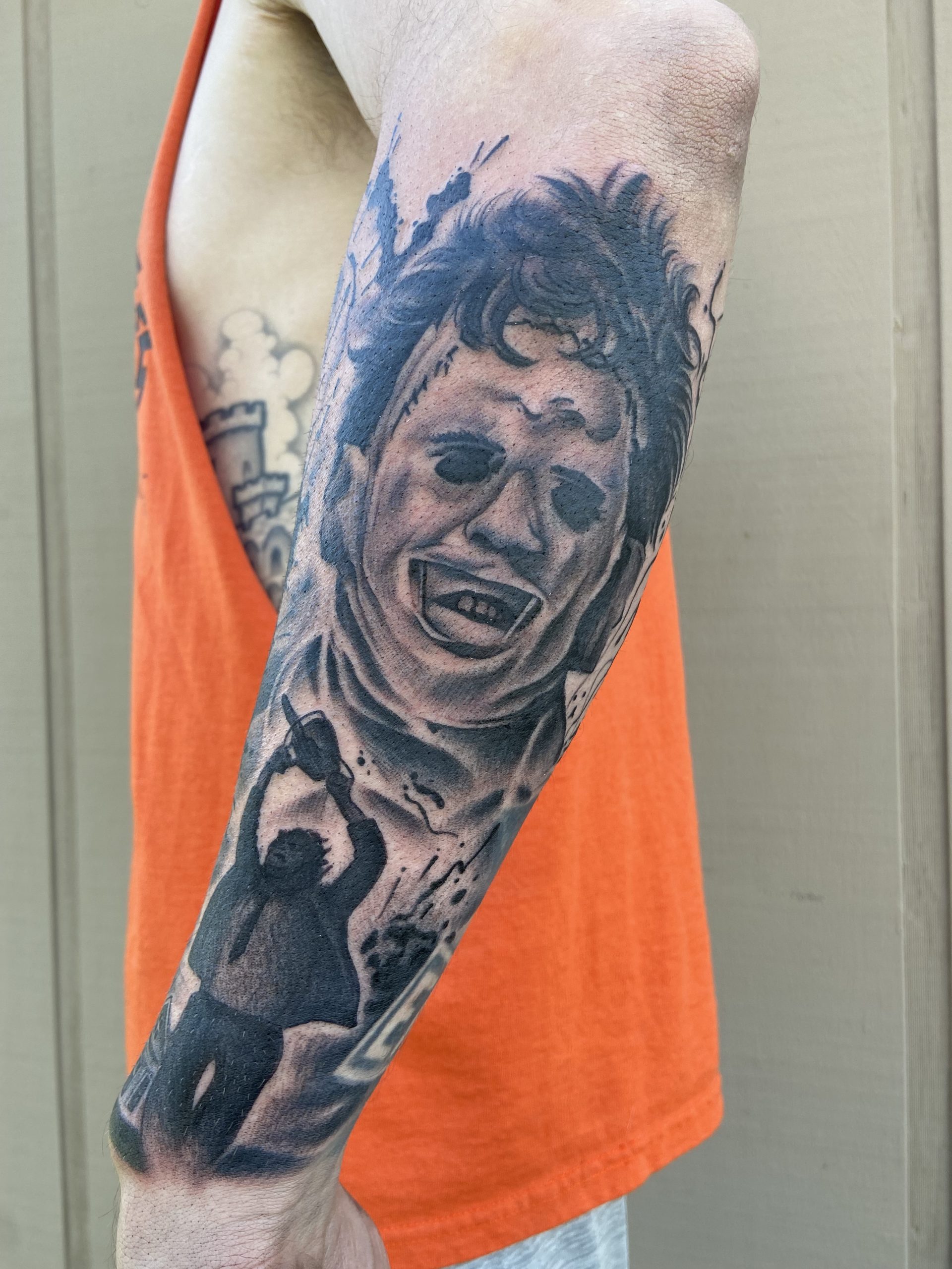 My range of expertise includes simplistic traditional tattoos, full sleeve, portrait work, black and gray, color, and cover-up tattooing. I have no singularly preferred tattoo art style, I am just thrilled to be able to work with an individual to give them my creativity and my 20 plus years of experience in tattooing to create a piece of art to wear proudly for a lifetime. Attention to detail and patience in any job no matter how small or big, is what drives my work ethic. I enjoy making people happy with all forms of art I can share in life: words, thoughts, pictures, music, food, interactions, expression and interpretations.